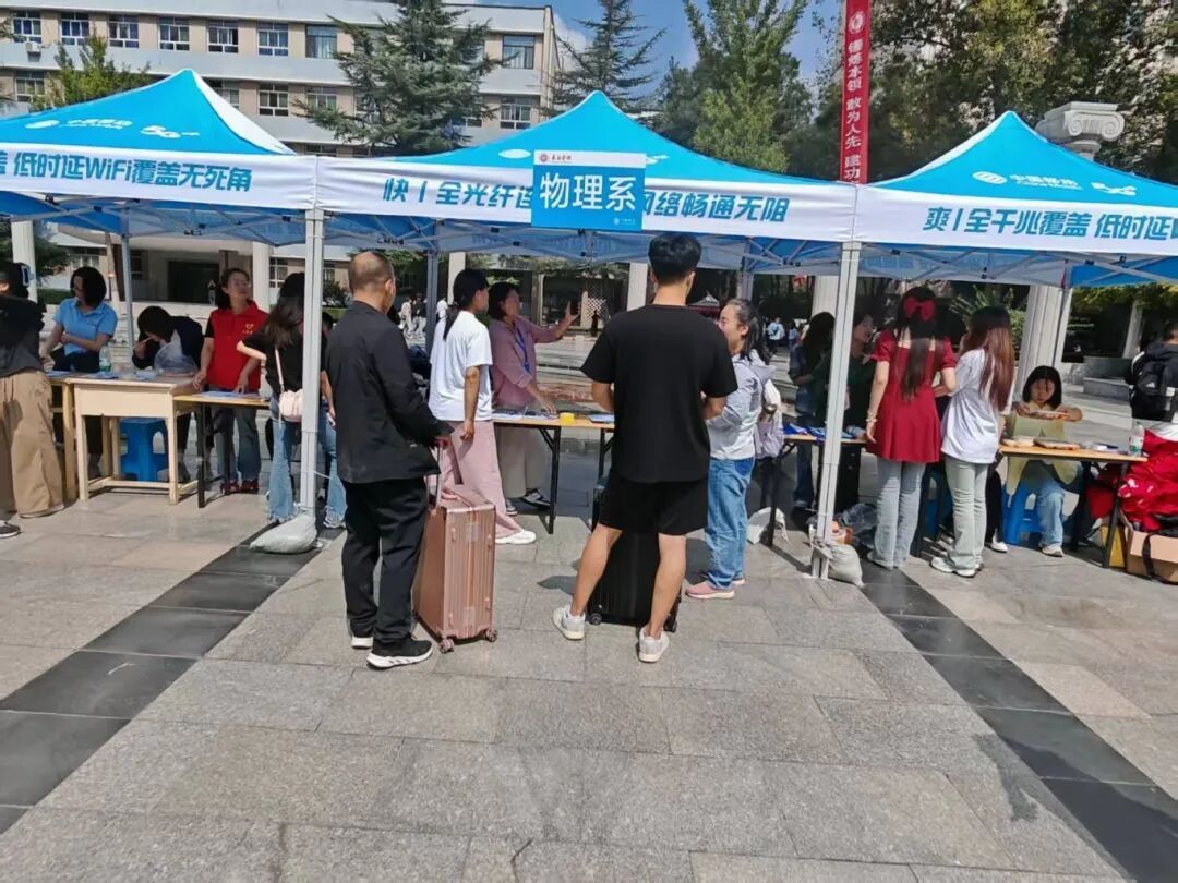 九月长院,风暖人热忱。校园里最动人的风景,是为新生奔波的“志愿红”与“教师蓝”。秋日暖阳下,志愿者们快步接过行囊,大行李箱、被褥卷稳稳扛在肩。汗水浸湿马甲,他们仍往返于校门与宿舍楼,用肩扛手提的温度,将新生的慌乱换成安心,这是长院的第一份见面礼。物理系接待处,老师们高效办理登记、核对信息,细细交代注意事项;志愿者们耐心解答“课程表何时发”“实验室在哪”等问题,还手把手指引路线。细致与耐心,都在说:别怕陌生,我们带你融入。愿这份温暖,伴你在长院扎根成长。未来四年,这里是家,我们陪你走!