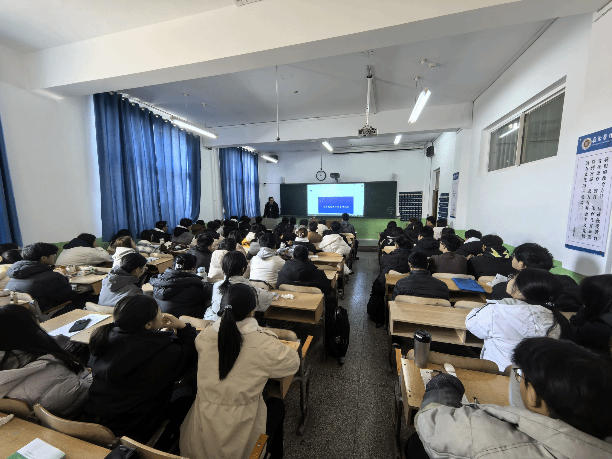 2025年11月28日,长治学院物理系特邀长治凌燕机械厂军械机载设备修理工程师赵海参,为2025级电子信息科学与技术专业的同学们带来了一场题为《从校园到苍穹:电子信息的社会化互联之路》的专题讲座。讲座最后,赵工对同学们寄予了殷切期望。他希望大家在宝贵的大学四年里,不仅能够系统掌握专业知识与技能,更能主动思考并规划设计自己的未来蓝图;不仅要学会处理与传输物理世界的电子信号,更要深刻理解并努力实现个人与社会价值的传递。他祝愿每一位同学在毕业之时,都能“胸有沟壑,眼里有星光”,以扎实的学识、明晰的规划和坚定的信念,开创属于自己独一无二的“星光大道”。