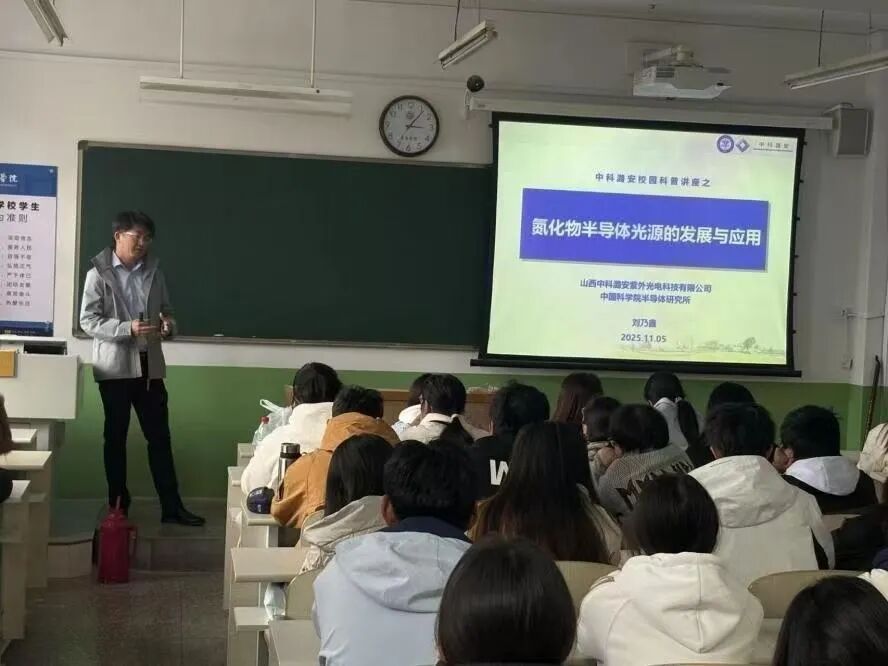 2025年11月5日,长治学院物理系特邀山西中科潞安紫外光电有限公司副总经理刘乃鑫博士,在2号楼116教室开展“中科潞安校园科普讲座之氮化物半导体光源的发展与应用”讲座。
