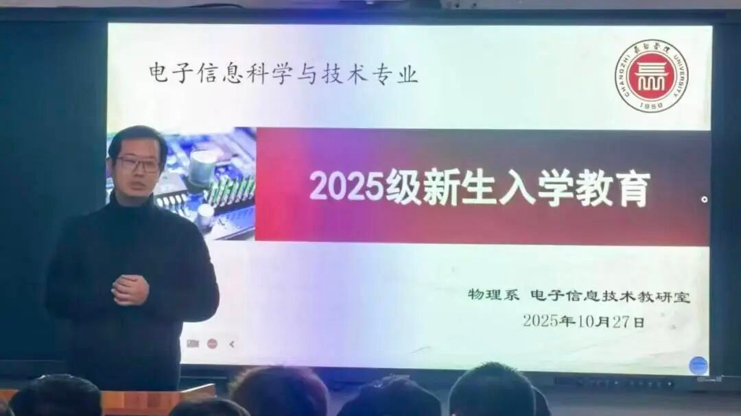 为帮助2025级新生尽快适应大学生活、深入了解专业背景、明确未来发展方向,电子信息科学与技术专业于10月27日17时30分在二号教学楼144教室开展了新生专业教育会。参加本次会议的包括电子信息技术教研室主任王翔宇、教学实践教研室主任张龙、物理系党委副书记兼2025级电子专业辅导员张蕾、电子专业教授贾兰芳,及电子2501、2502班全体新生。本次专业教育会的召开,使2025级电子信息科学与技术专业新生对专业有了更加清晰的认识,对大学四年的学习与生活也有了更加明确的规划。同学们纷纷表示,将牢记各位老师的教诲,尽快适应大学生活,努力提升自身综合素质与专业技能,不负青春韶华。