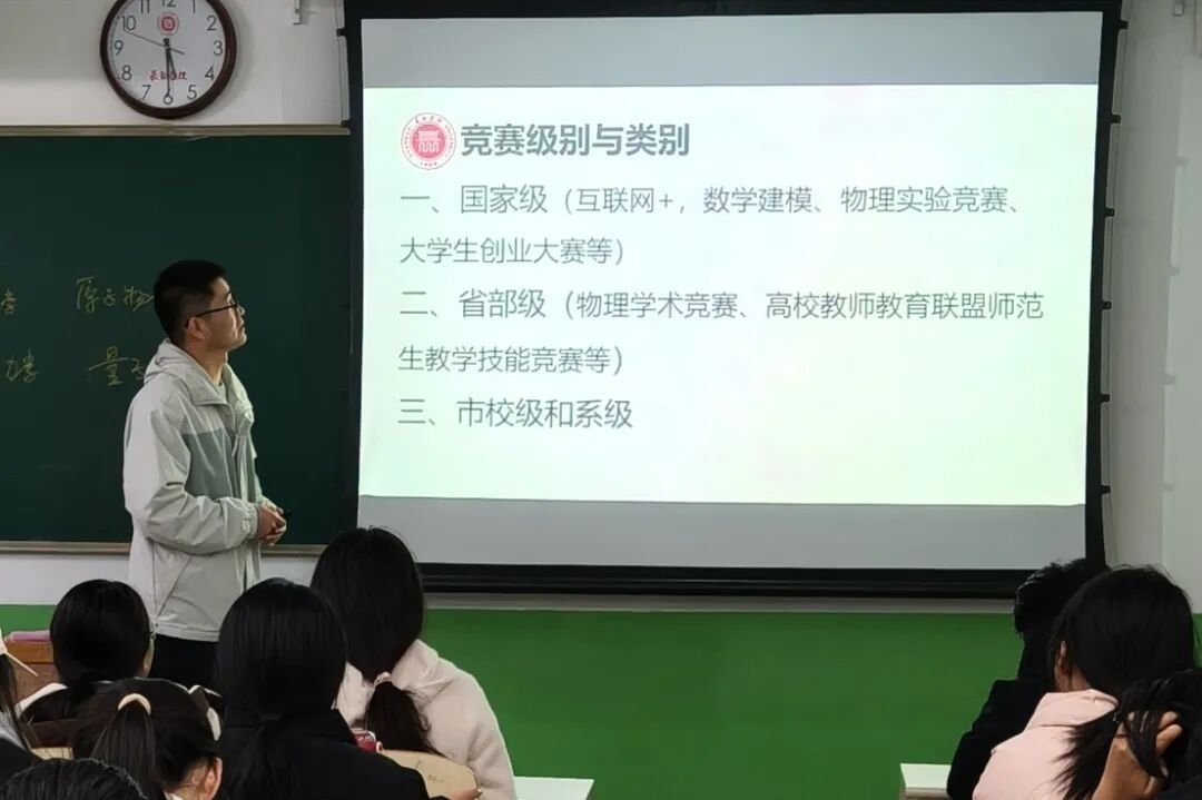 物理系于10月21日下午四点半在二号教学楼125教室开展物理学专业见面会。本次见面会由王艳、王凯雷两位老师担任主讲,围绕物理学的课程安排以及就业方向等方面为学生答疑解惑。本次专业见面会不仅帮助2025级新生全面了解了物理学专业的培养体系与发展前景,更有效化解了新生在专业认知与学业规划上的困惑,为他们后续的专业学习与个人发展提供了清晰的指引。
