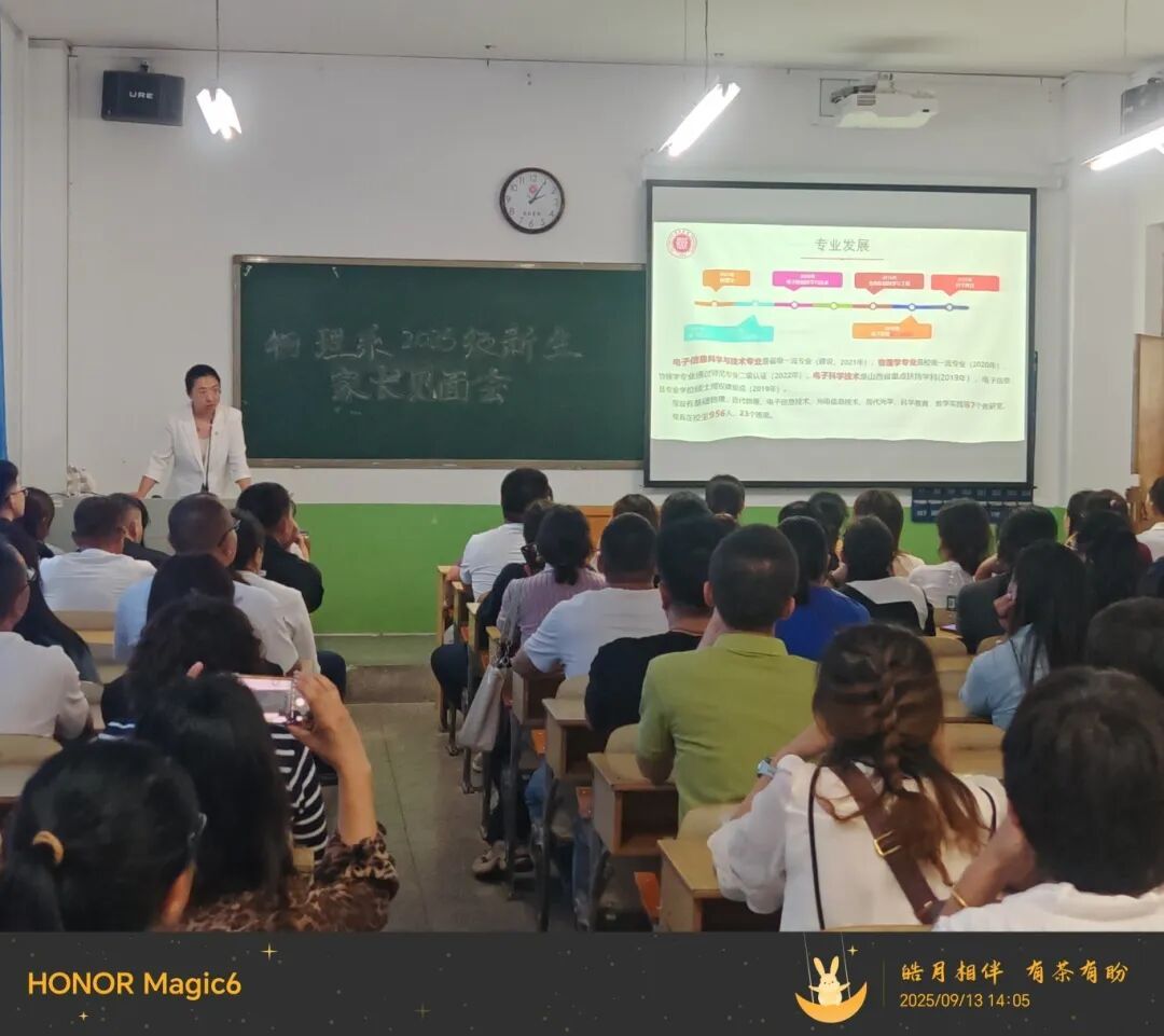 2025年9月13日下午,物理系在2号楼114教室召开2025级新生家长见面会。物理系党委副书记张蕾及部分新生家长参加了本次会议。展望未来,物理系将以此为新的起点,与家长们建立更紧密、更高效的沟通机制,共同为同学们营造一个充满关怀与挑战的成长环境,助力他们在大学阶段实现全面发展。