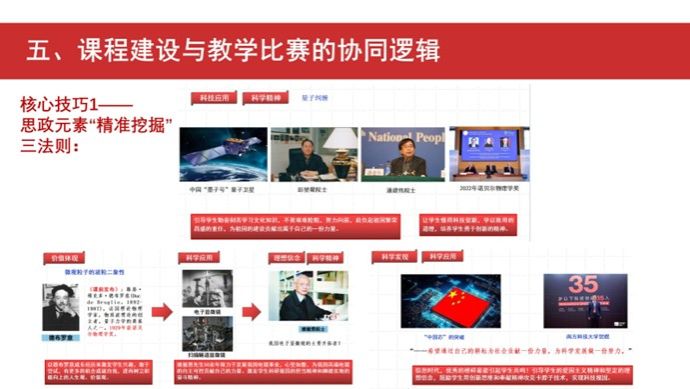 沙龙中,山西省普通高等学校课程思政教学设计大赛二等奖获得者逯美红老师结合自己参加竞赛的经历分享了备赛和课程建设经验,从课程建设的关键维度、实施路径、两性一度、赛道要求、课程分析、教案撰写、教学设计、团队建设、课程建设与教学比赛的协同等多个方面进行详细阐述,并延展到最近的热门问题--智慧课程建设进行了分享。